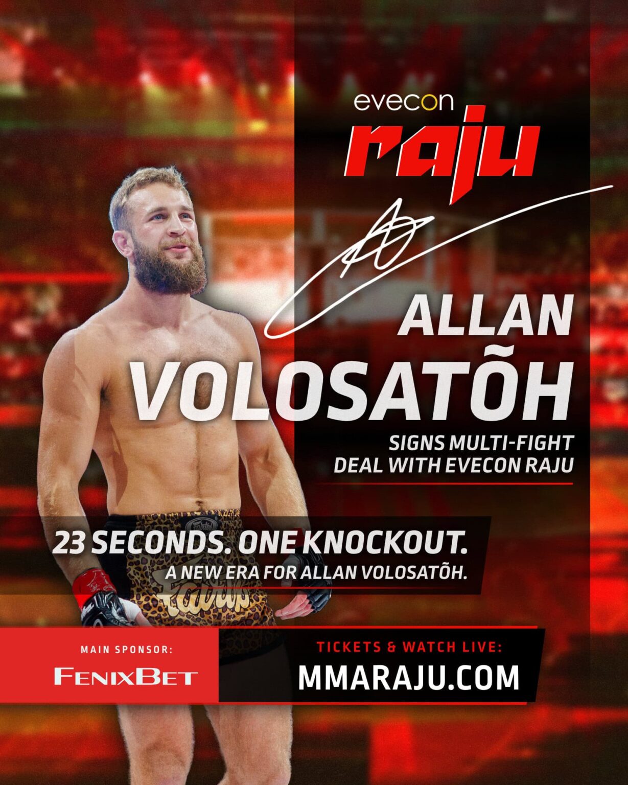 According to Evecon Raju event director Ott Tõnissaar, Volosatõh brings exciting new depth to the Estonian MMA landscape. “Allan’s performance at Raju 18 clearly showed what he is capable of. The fact that he will now dedicate more of his focus to MMA is a huge gift for the fans. He has all the instincts needed to succeed in this sport — everything else can be learned,” said Ott Tõnissaar.